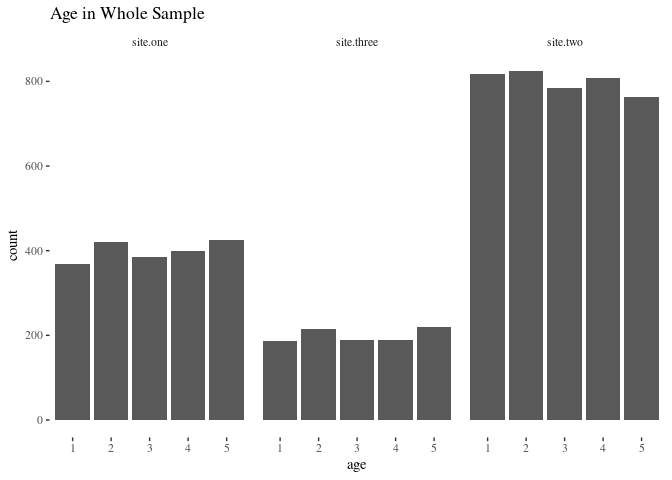 barbysite(df2,"age") + ggtitle("Age in Whole Sample")