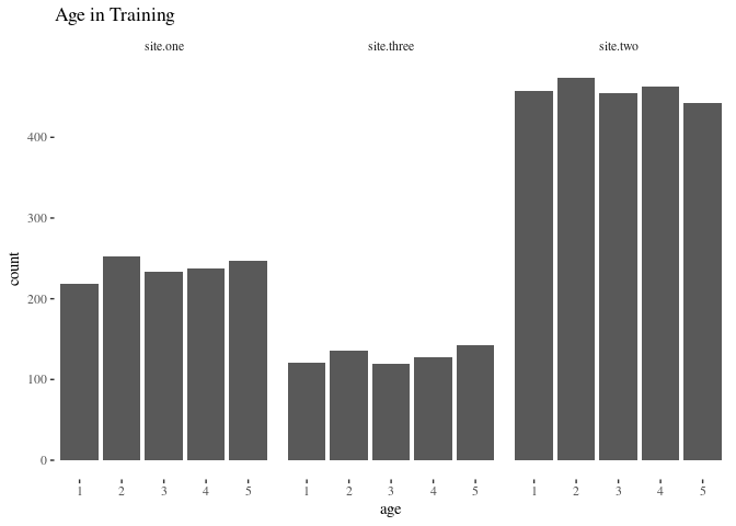 barbysite(df2[df2$train,],"age") + ggtitle("Age in Training")