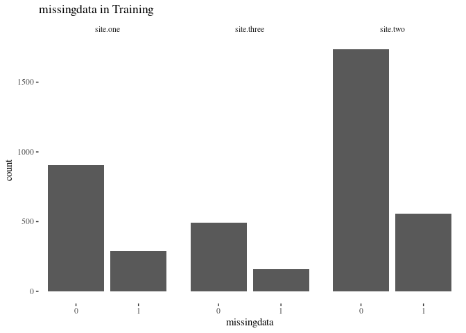 barbysite(df2[df2$train,],"missingdata") + ggtitle("missingdata in Training")