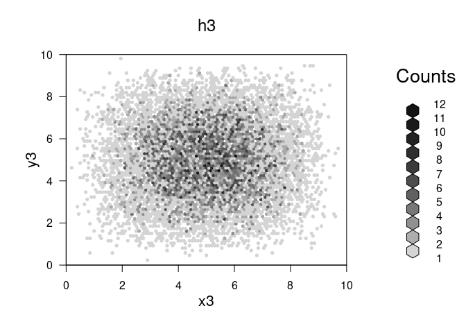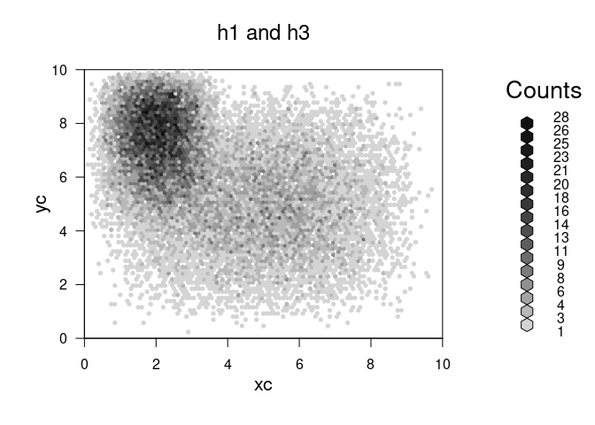 ## 'hexbin' object from call: hexbin(x = x3, y = y3, xbins = 100, shape = 0.75, xbnds = c(0, 10), ybnds = c(0, 10))